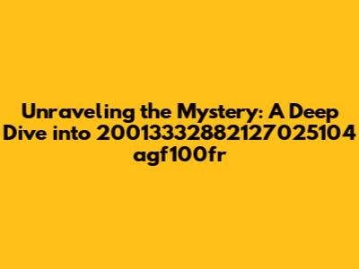 Have you ever stumbled upon a seemingly random string of characters and wondered, "What on earth does that even mean?" Today, we're going to dissect one such enigma: 20013332882127025104 agf100fr. This alphanumeric code might appear cryptic at first glance, but by breaking it down and exploring potential contexts, we can start to understand its possible origins and significance. Think of it as digital archaeology – digging through the layers of information to unearth the hidden meaning. We'll explore various scenarios where such a code might appear, from product identification to system-generated identifiers, and equip you with the knowledge to decipher similar codes in the future. By the end of this journey, you’ll not only understand what 20013332882127025104 agf100fr could represent, but also develop a methodology for approaching and interpreting other mysterious identifiers you encounter in the digital world. Remember, every seemingly random string has a story to tell; it's just a matter of knowing how to listen.