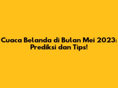 Cuaca di Belanda pada bulan Mei biasanya menunjukkan transisi dari musim semi ke musim panas. Suhu rata-rata berkisar antara 10°C hingga 18°C (50°F hingga 64°F), tetapi bisa bervariasi tergantung pada hari dan lokasi tertentu. Prediksi cuaca Belanda menunjukkan bahwa Anda akan menikmati banyak hari cerah dengan sinar matahari yang cukup. Namun, Anda juga harus bersiap menghadapi beberapa hari hujan atau mendung. Curah hujan cenderung lebih rendah dibandingkan bulan-bulan musim gugur atau musim dingin, tetapi payung atau jas hujan ringan tetap menjadi perlengkapan yang bijaksana untuk dibawa.
