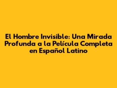 Dónde Ver "El Hombre Invisible" Película Completa en Español Latino