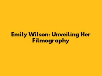 Emily Wilson: Unveiling Her Filmography