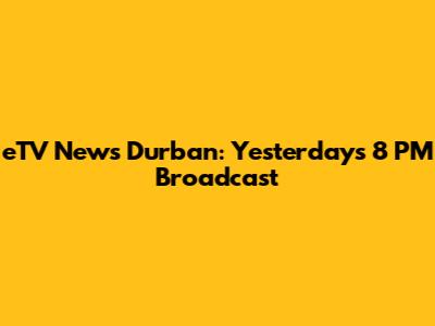 What's up, news junkies! Ever missed the 8 PM eTV news bulletin for Durban yesterday and felt like you're living under a rock? Don't sweat it, guys! We've got your back. This article is your one-stop shop to catch up on all the essential happenings that unfolded in and around our vibrant city. From the latest political drama that had everyone talking to those heartwarming community stories that make Durban special, we're diving deep. We'll break down the key segments, highlight the most impactful news items, and give you the lowdown on what you need to know. So, grab a cup of coffee, settle in, and let's rewind to yesterday's eTV news at 8 PM. We'll make sure you're up to speed, no matter what you missed. Whether it was a major development in local governance, a shocking crime incident, a breakthrough in community projects, or even that quirky local event that brought a smile to our faces, we're covering it all. Understanding the local news landscape is crucial for staying informed and engaged with your community, and yesterday's broadcast was packed with information that affects us all. Let's get started on piecing together the narrative of what happened yesterday, ensuring you don't miss any crucial details.