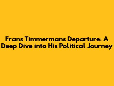 Hey guys! Let's talk about something that's been buzzing in the political world: Frans Timmermans' departure. Yeah, you heard it right! This is big news, and we're going to break down everything you need to know about his decision to step down. We'll look at his career, the impact of his move, and what it all means for the future. So, buckle up, because we're diving deep!