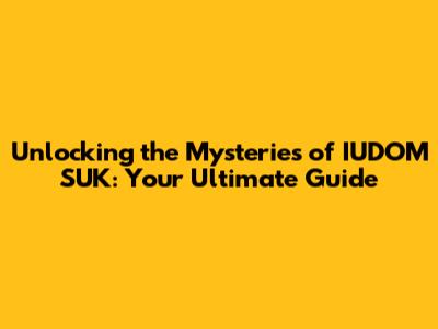 Unlocking the Mysteries of IUDOM SUK: Your Ultimate Guide