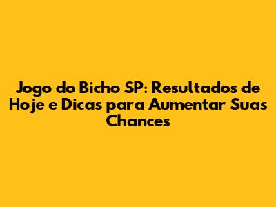 Jogo do Bicho SP é um dos jogos de azar mais populares no estado de São Paulo, atraindo milhares de apostadores diariamente. Se você é um deles, ou está apenas começando a se interessar, este guia completo é para você! Aqui, vamos explorar os resultados do Jogo do Bicho SP hoje, fornecer dicas valiosas para aumentar suas chances de ganhar e desmistificar algumas das lendas que cercam este jogo fascinante. Prepare-se para mergulhar no universo do Jogo do Bicho e descobrir como se manter informado e estratégico.