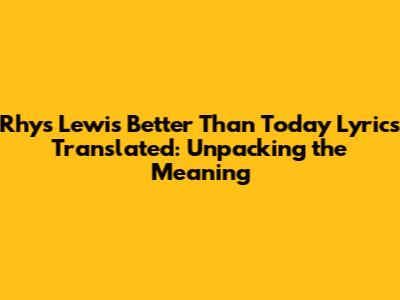 Rhys Lewis 'Better Than Today' Lyrics Translated