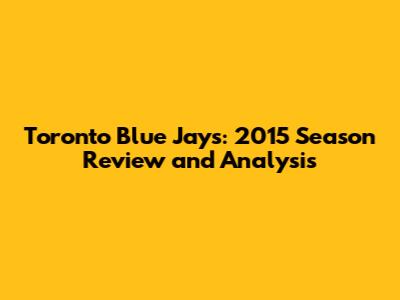 Toronto Blue Jays: 2015 Season Review And Analysis