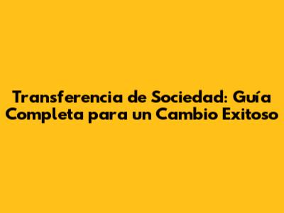Transferencia De Sociedad: Guía Completa Y Todo Lo Que Necesitas Saber
